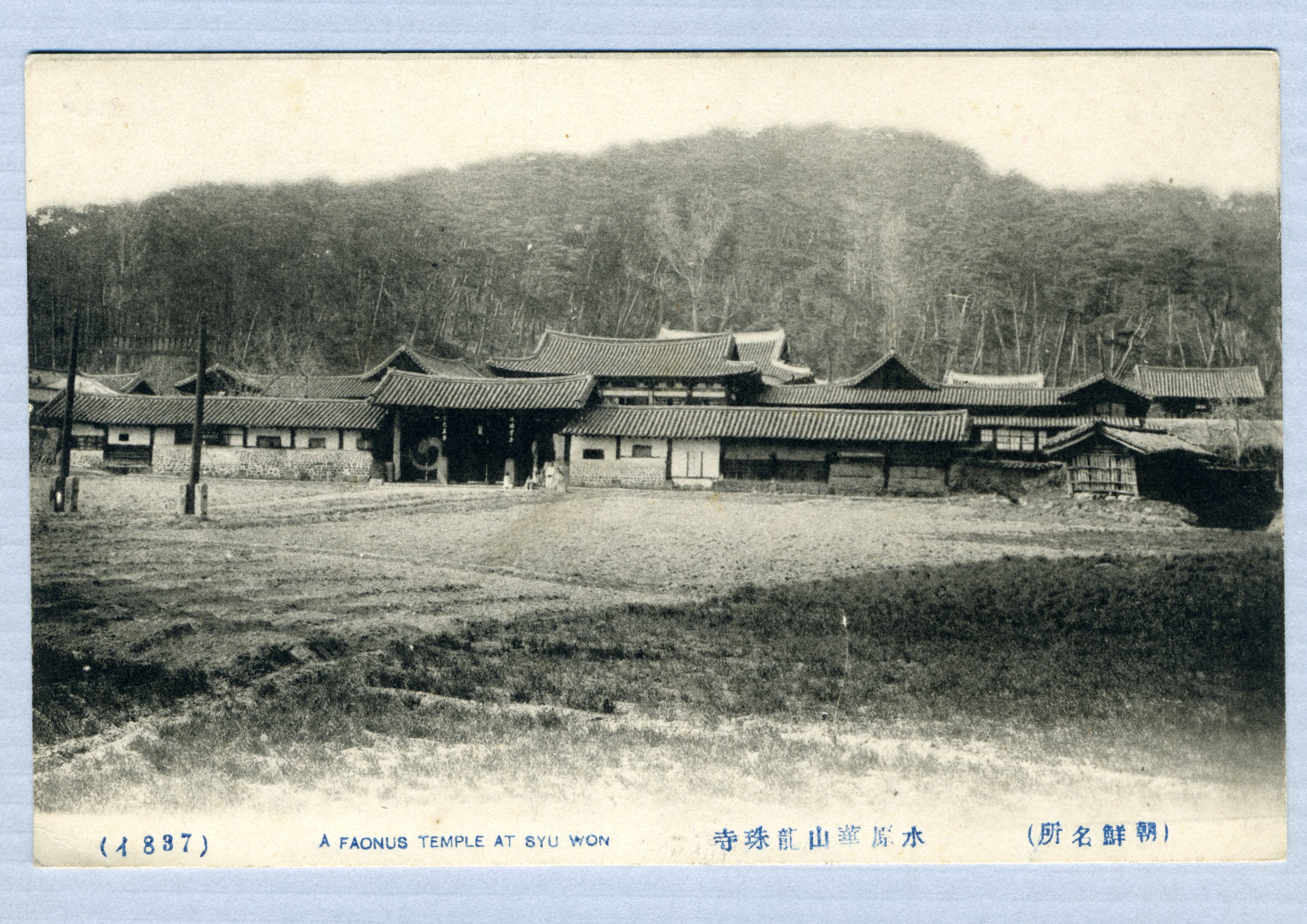 측면에서 용주사의 모습을 찍은 사진엽서다.