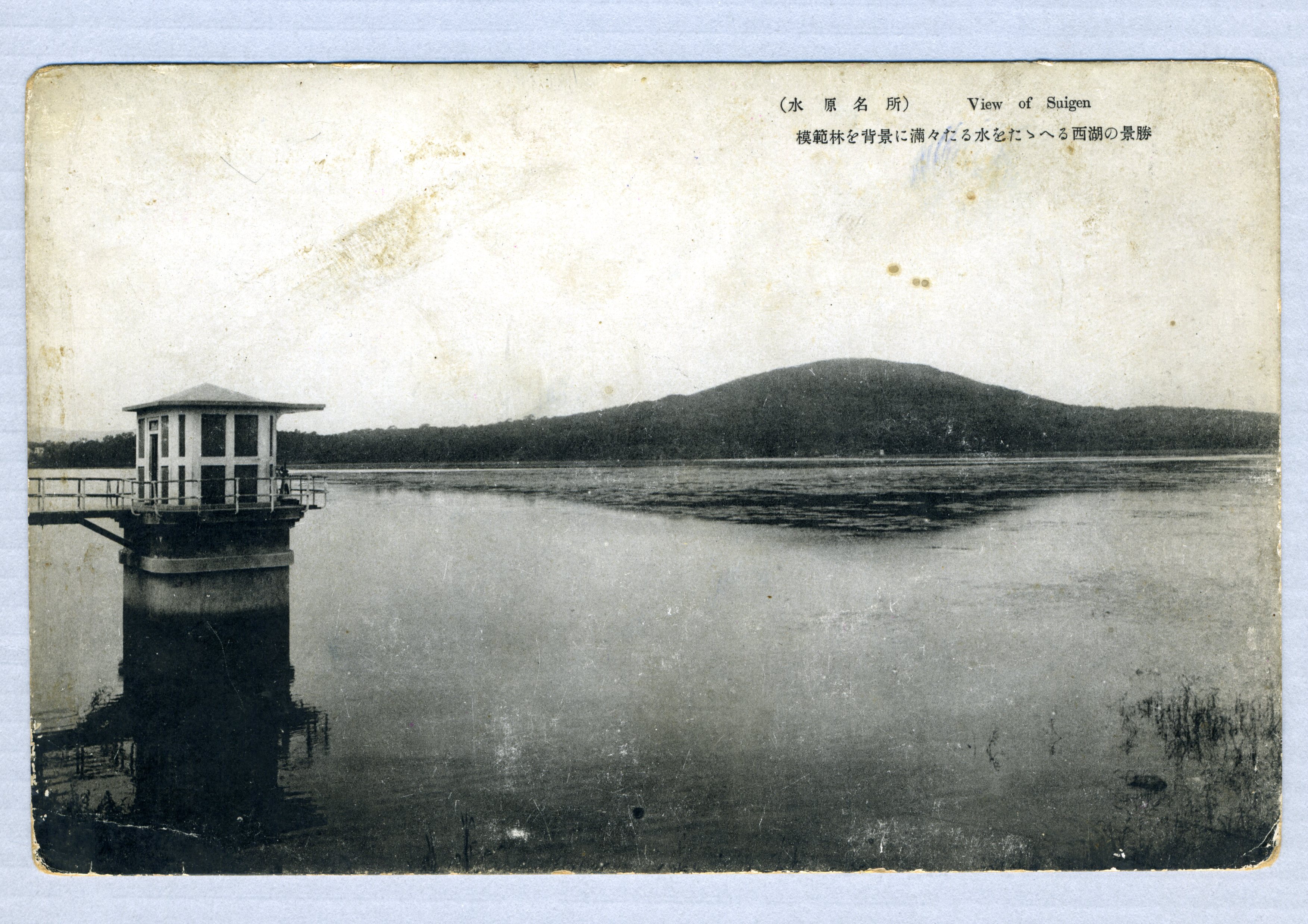 북지에 핀 푸른 연꽃의 모습을 찍은 사진엽서다.