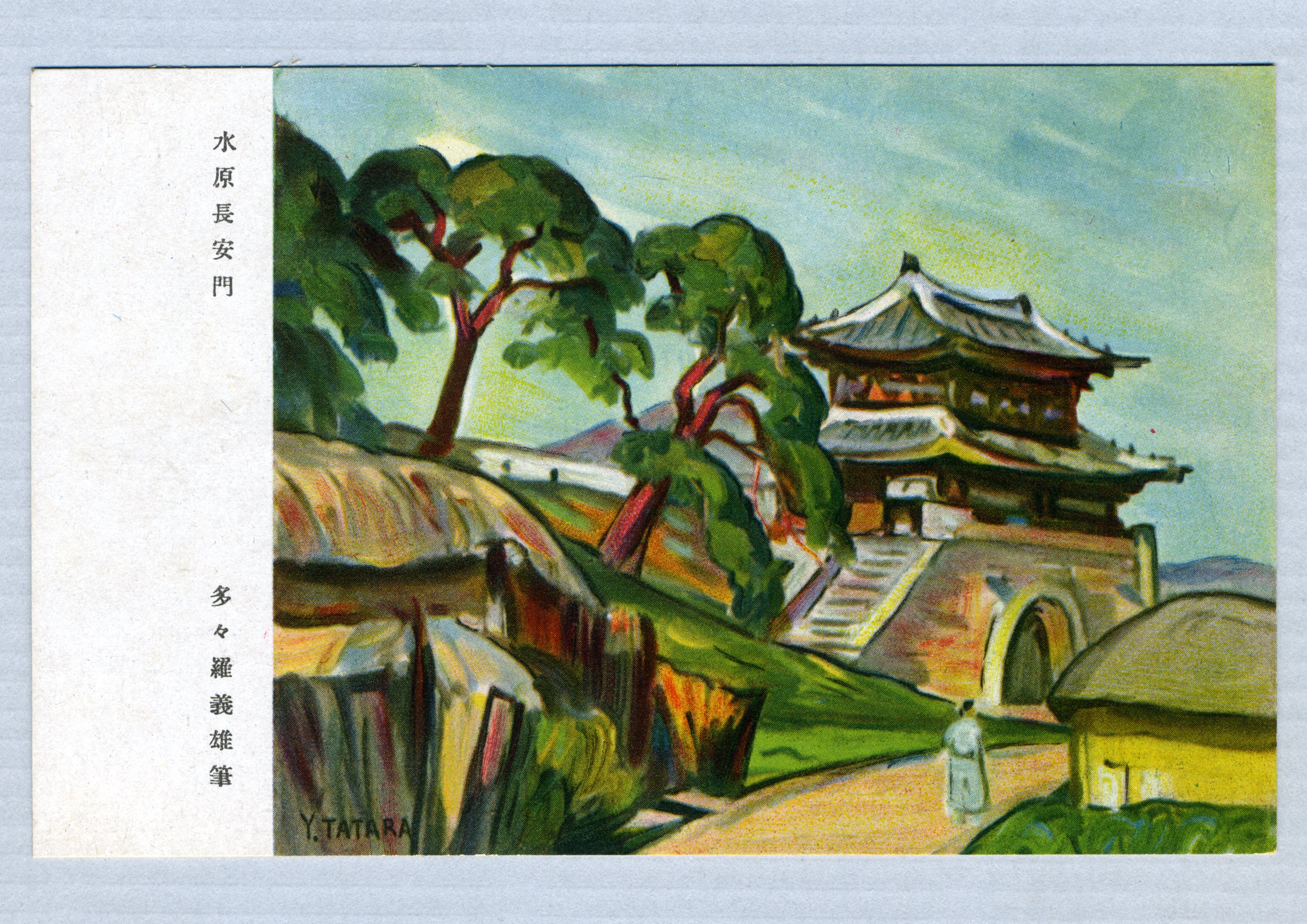장안문의 모습을 그려 넣은 엽서다.