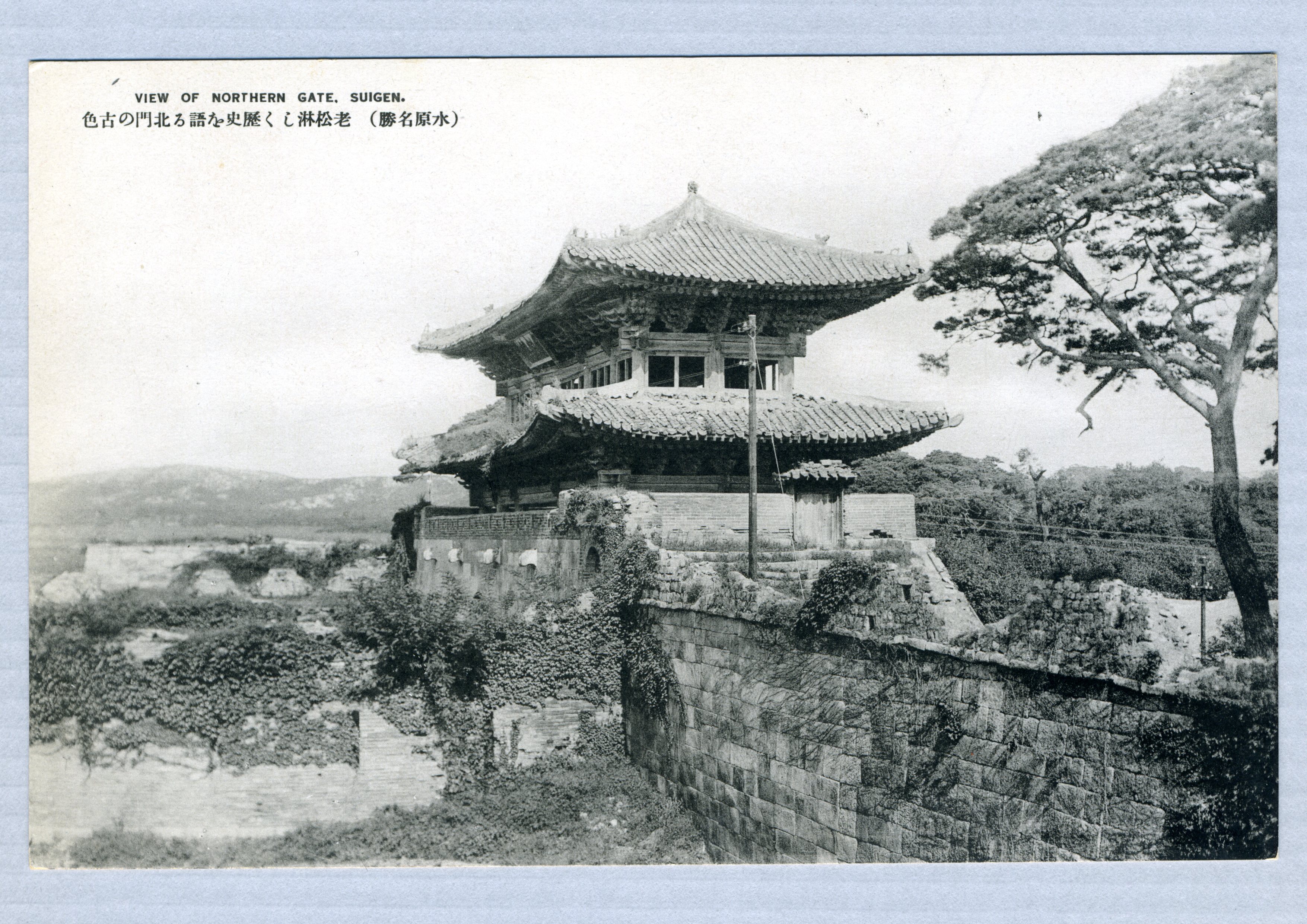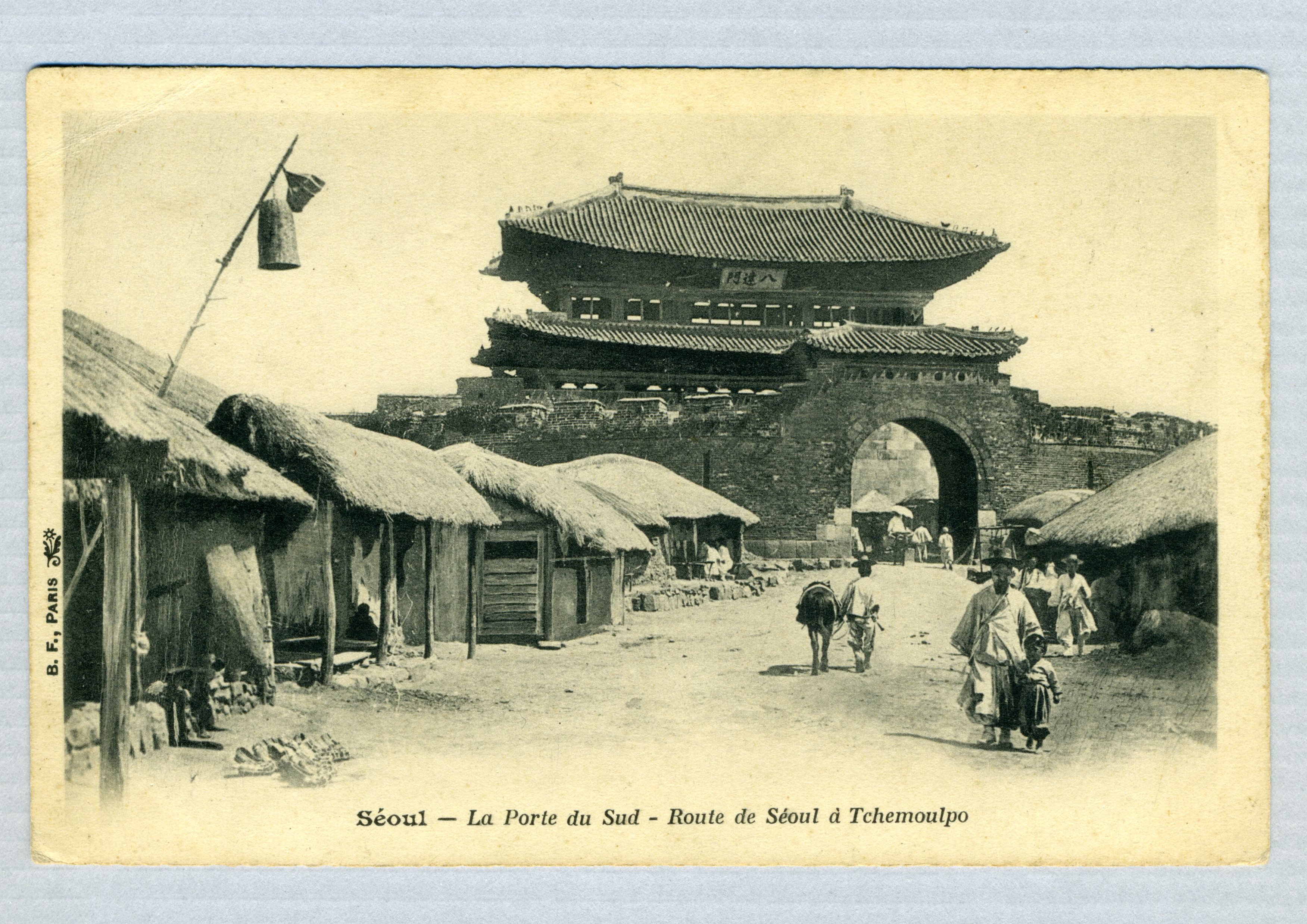 팔달문의 모습을 찍은 사진엽서다. 하단에는 프랑스어로 '서울에서 제물포로 가는 길의 서울의 남문'이라 표기되어 있다.