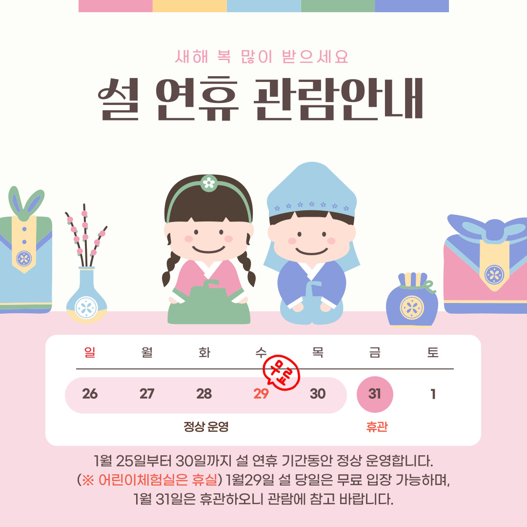 (※단 어린이체험실은 설 연휴 기간 동안 휴실합니다. 관람객 여러분의 너른 양해 바랍니다.)