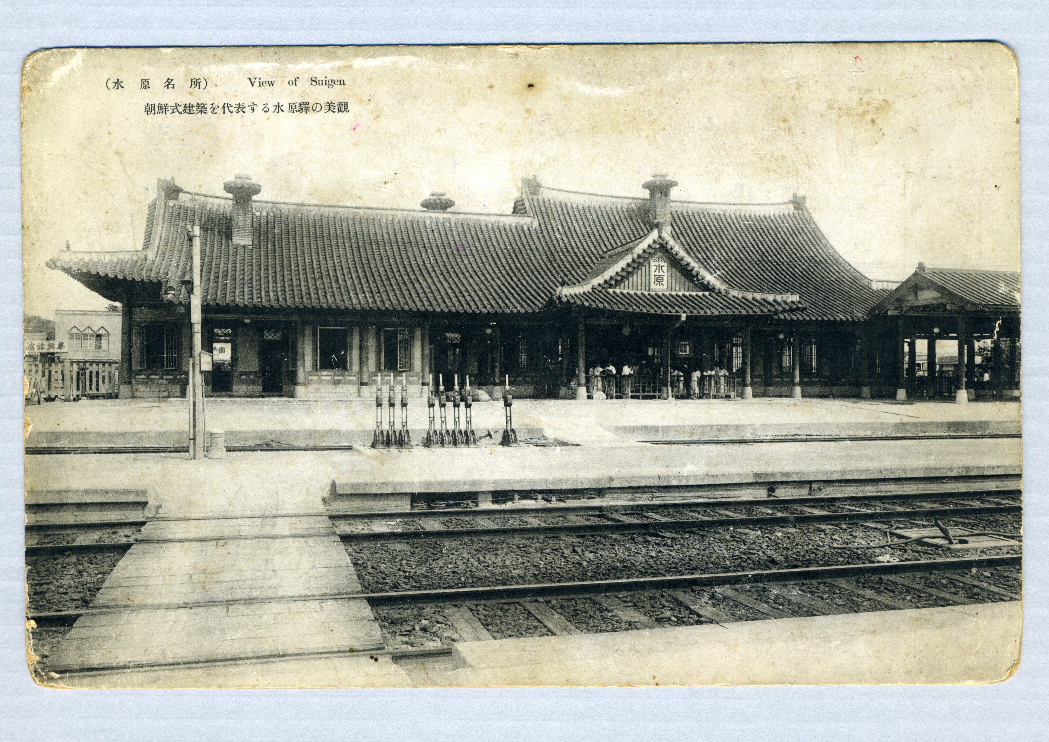 전통한옥양식으로 건설된 수원역의 내부를 찍은 사진엽서다.