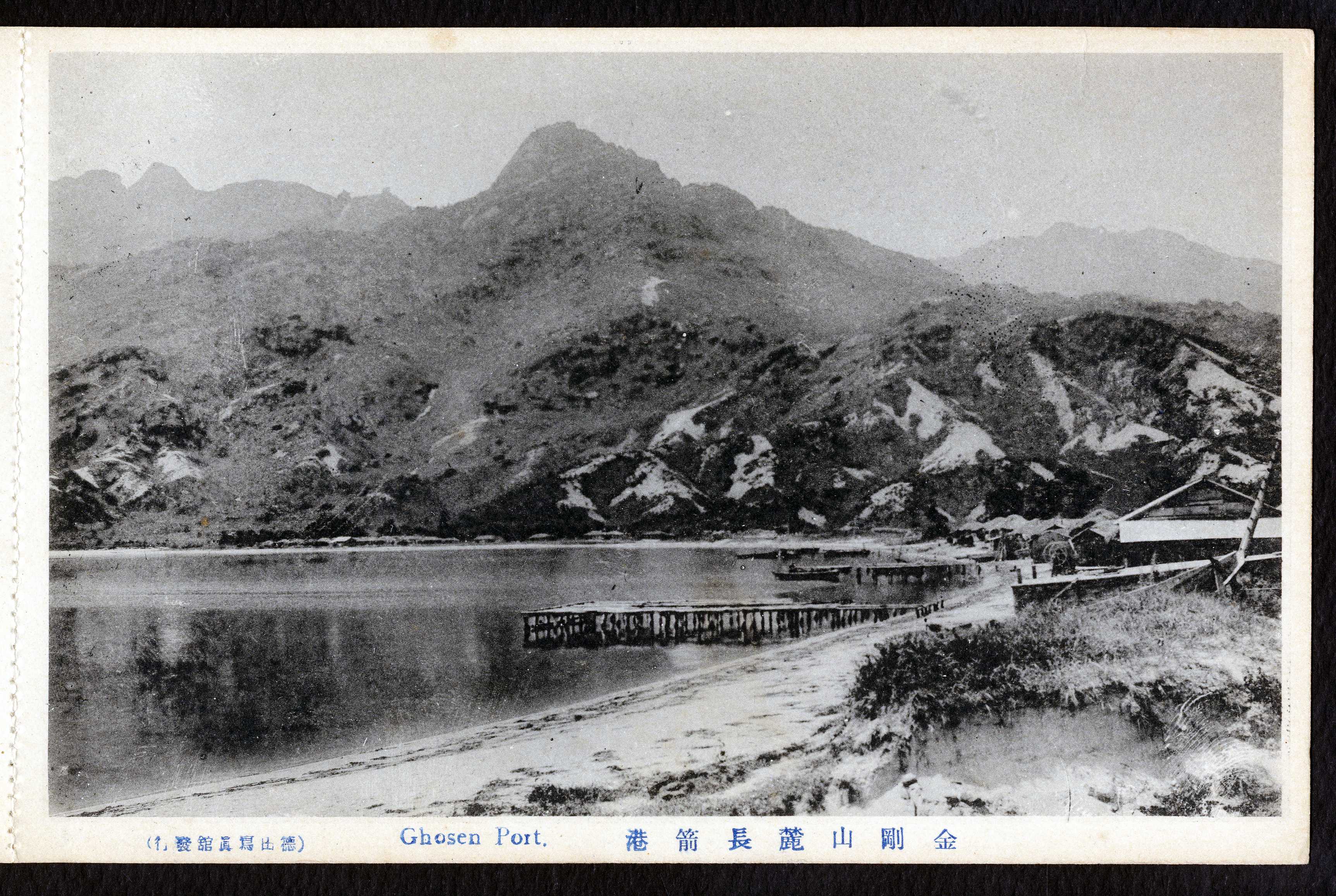 일제강점기 금강산 기슭의 장전항(長箭港) 사진이 인쇄된 사진엽서이다. 좌측 하단에는 '도쿠다(德田)사진관 발행'이라는 글자가 있다.