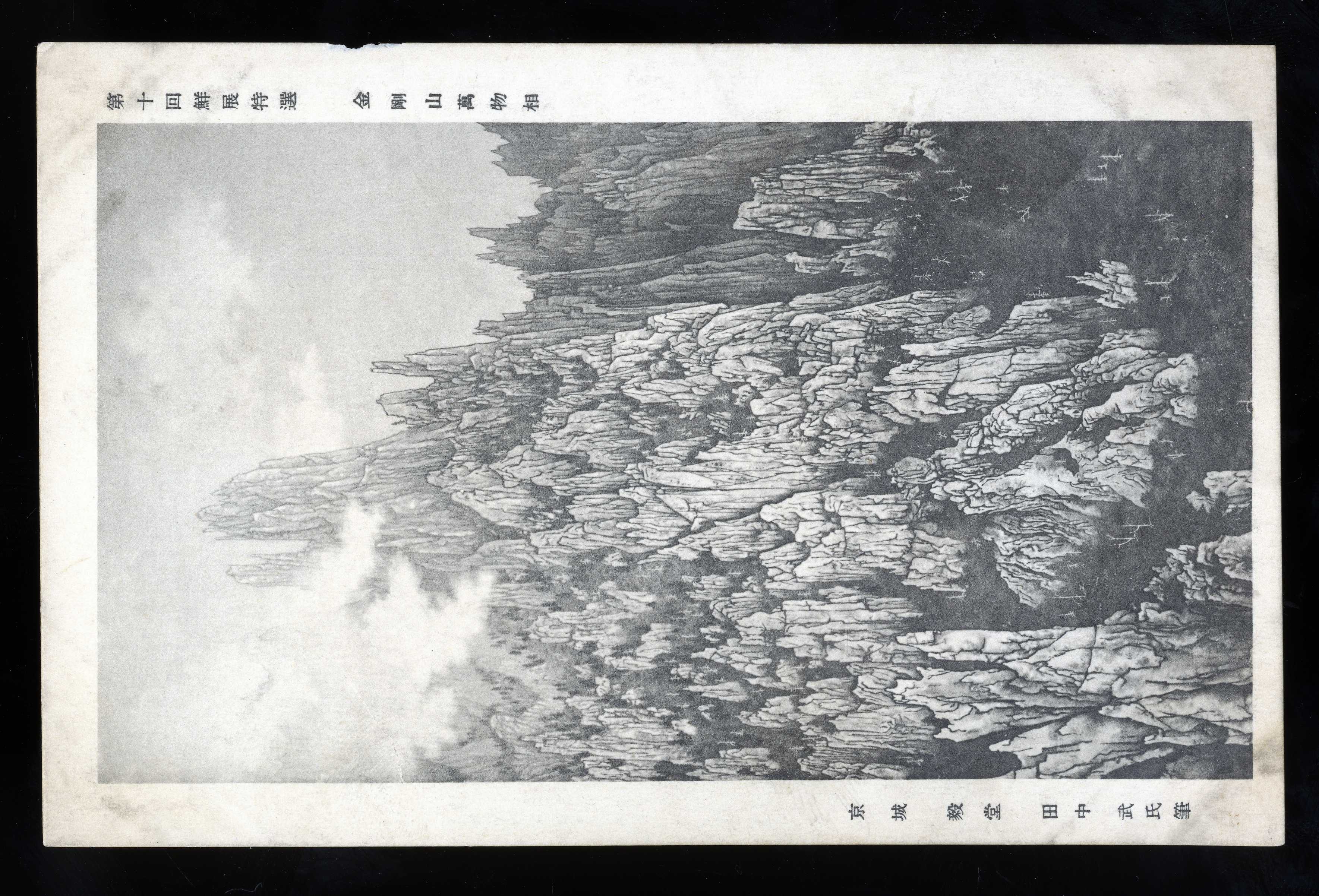 제 10회 조선미술전람회 특선인 금강산 만물상 그림이 인쇄된 엽서이다. 왼쪽에는 경성 毅堂 田中武가 그렸다는 글씨가 있다.