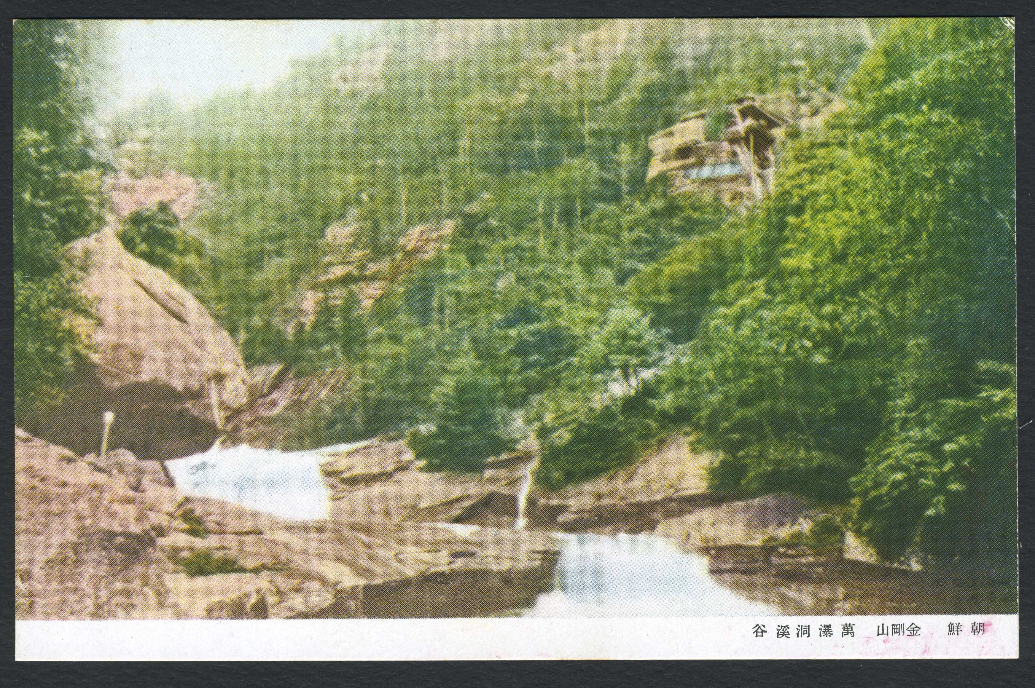 금강산 만폭동(萬瀑洞)계곡 그림이 인쇄된 엽서이다.