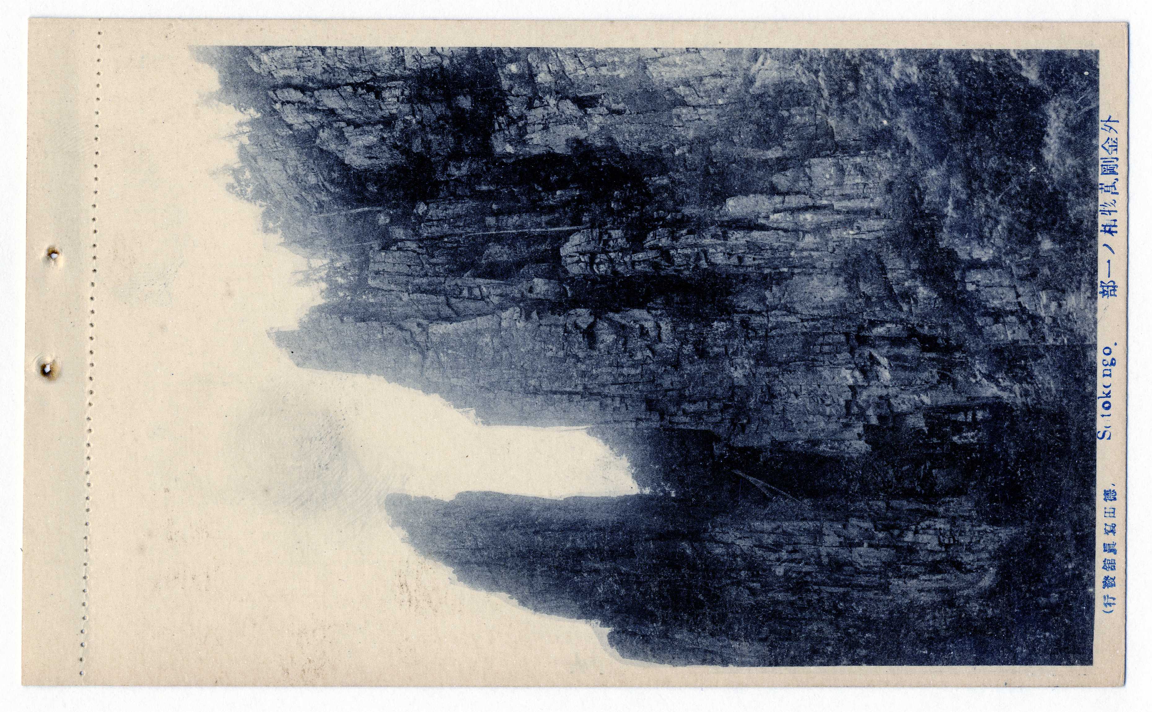 금강산 외금강 만물상(萬物相) 일부의 사진이 인쇄된 엽서이다. 좌측 하단에 '도쿠다(德田)사진관 발행' 글씨가 있다.
