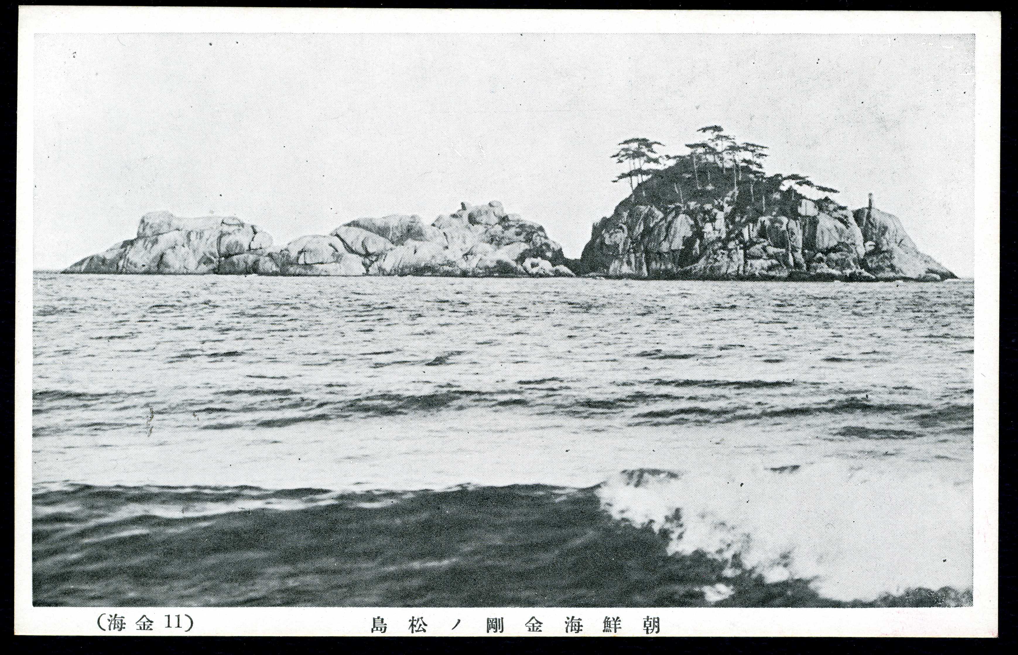 금강산 해금강에 있는 섬인 송도(松島) 사진이 인쇄된 엽서이다.
