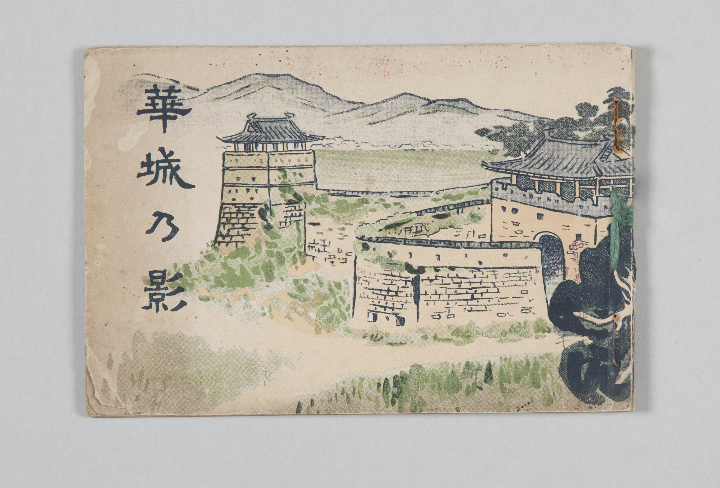 성곽 밖 서북각루 위쪽에서 바라본 화서동 일대이다. 성벽 건너편에 숙지산과 민가가 보이며 들판 너머 만석거 일부도 보인다. 이방인의 눈에도 오래된 성벽과 고즈넉한 농촌마을의 풍경이 아름다워 보였던 모양이다.