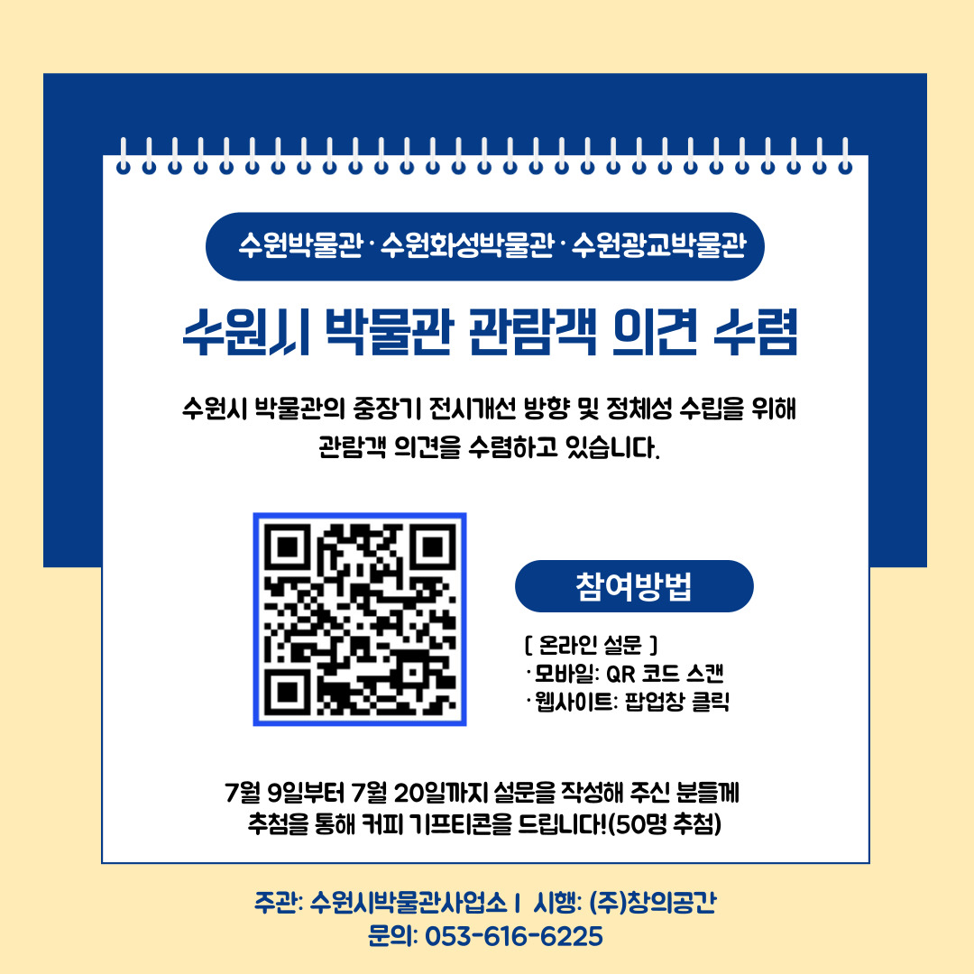 참여 링크: 수원시 박물관 발전을 위한 관람객 의견 수렴 - 네이버 폼