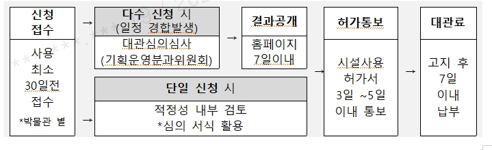 4. 서류접수 : 시설 사용 시작일 최소 30일전