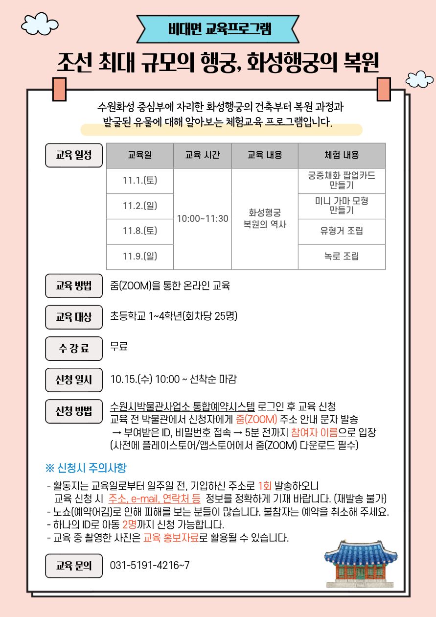 수원화성박물관 어린이대상 <주말 비대면 교육프로그램> 안내