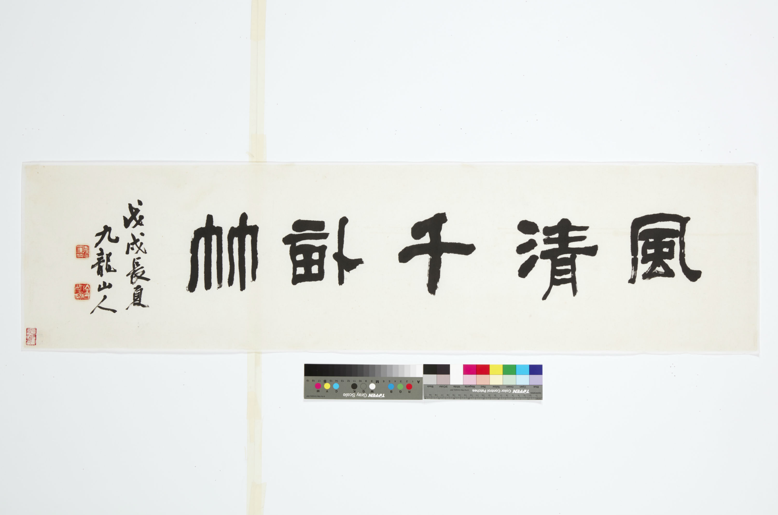 “청량한 바람이 부는 너른 대나무 밭” 이라는 뜻의 김용진(金容鎭 1878~1968)의 대자大字 예서이다. 김용진은 주로 한나라 《장천비張遷碑》의 필의를 바탕으로 강건하고 고졸한 예서풍을 구사했다. 1958년 음력 6월에 쓴 필적이다.
