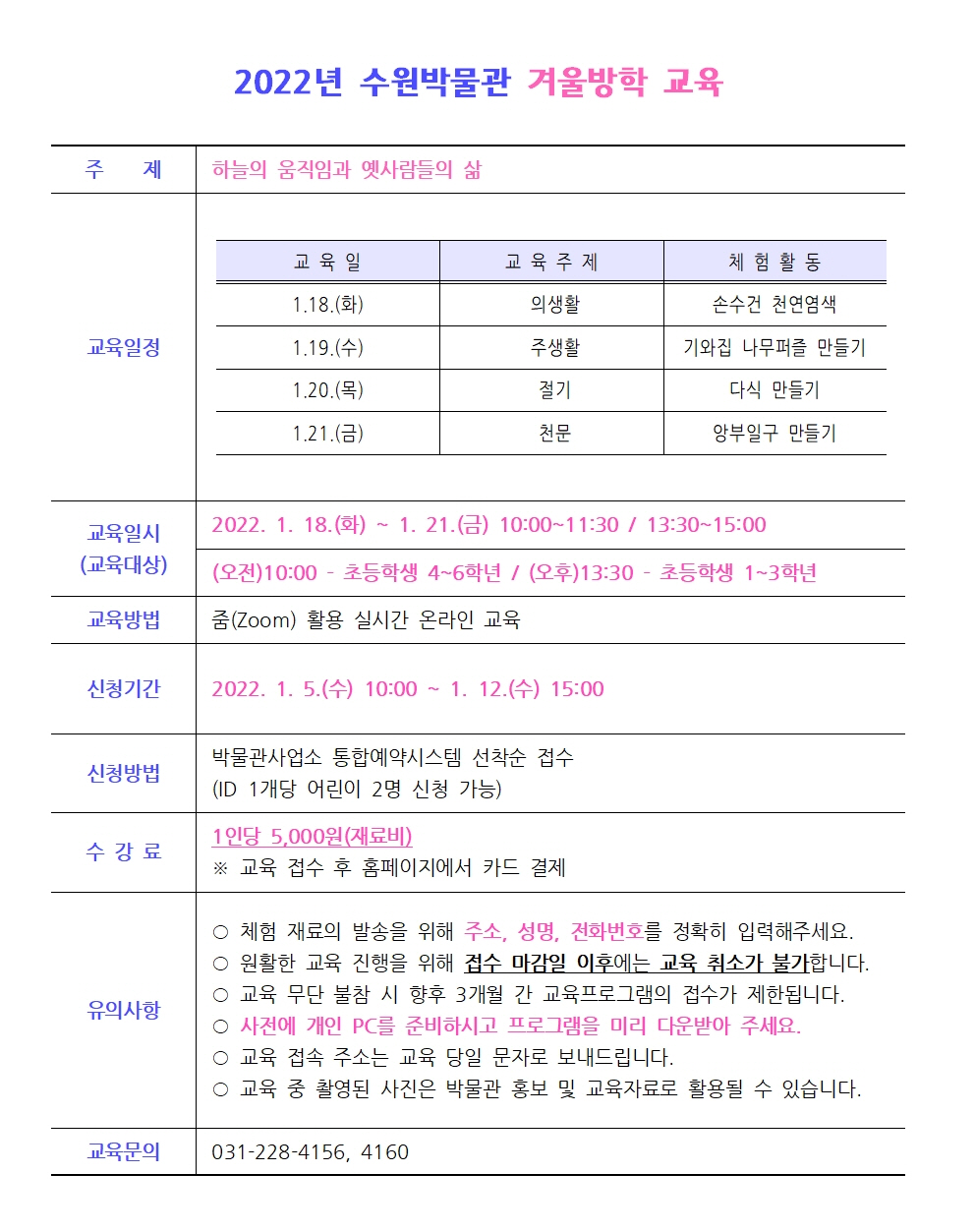 2022년 수원박물관 세시행사 <입춘첩 나누기> 행사 안내