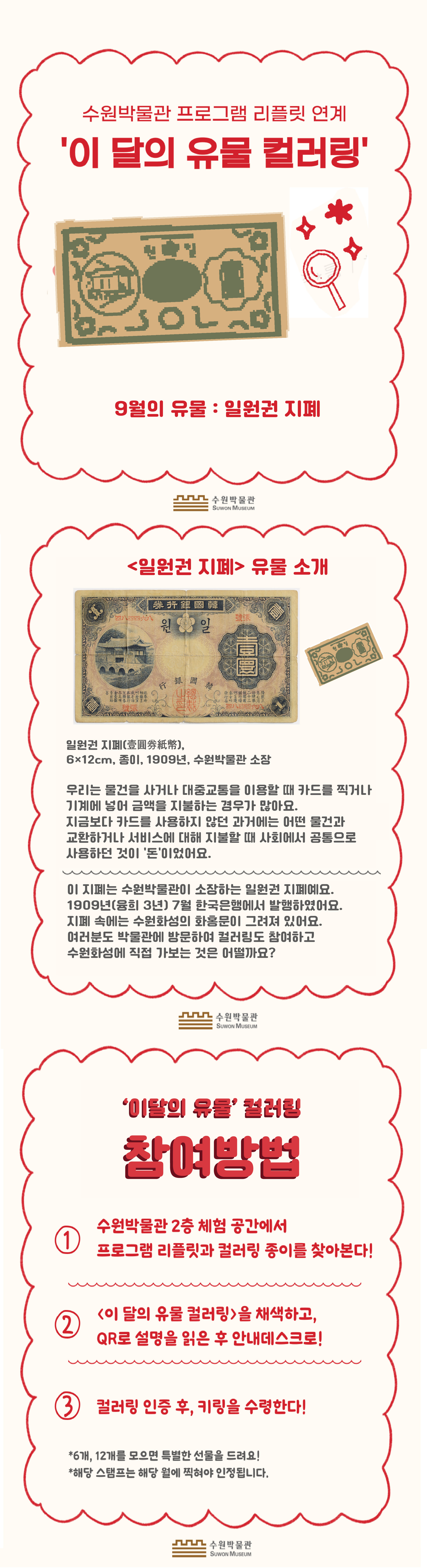 수원박물관 프로그램 리플릿과 연계한 상설 체험 활동인 <이 달의 유물 컬러링>은