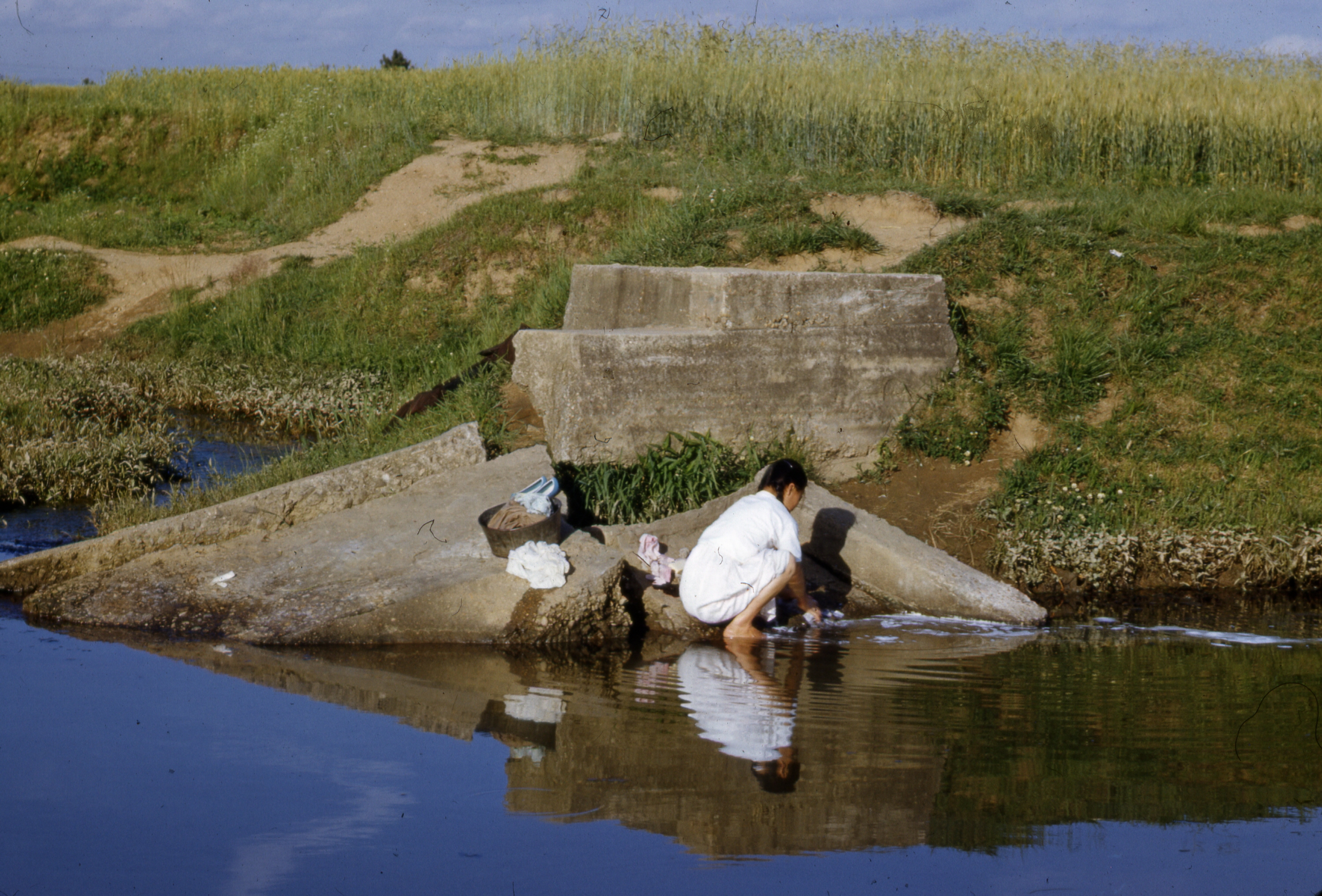 서호천 하구에서 빨래하는 여성